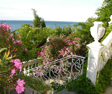 С террас раскрываются прекрасные виды на море и горы, деревья небольшого приусадебного парка создают необходимую прохладу в жаркие летние дни, цветы и растения радуют красотой и восхищают свежим ароматом. В комфортных номерах светло, просторно и по-домашнему уютно.