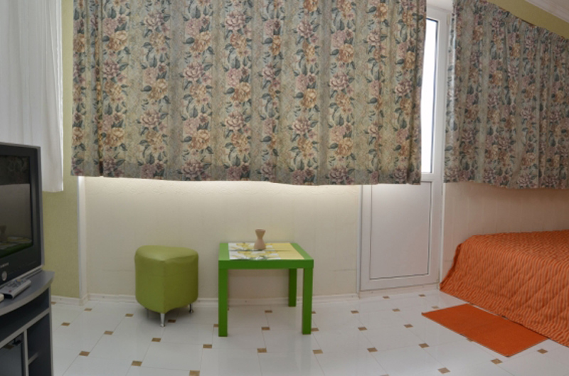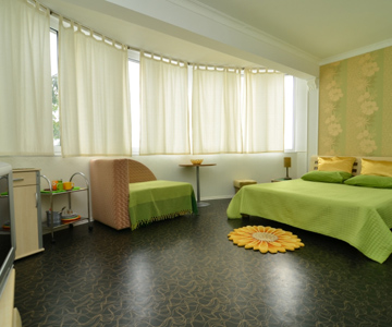 К вашим услугам 9 однокомнатных и 3 двухкомнатных номеров класса «люкс», площадью 25-30 кв. м., оборудованы кондиционерами.